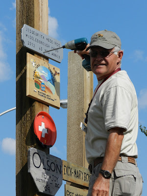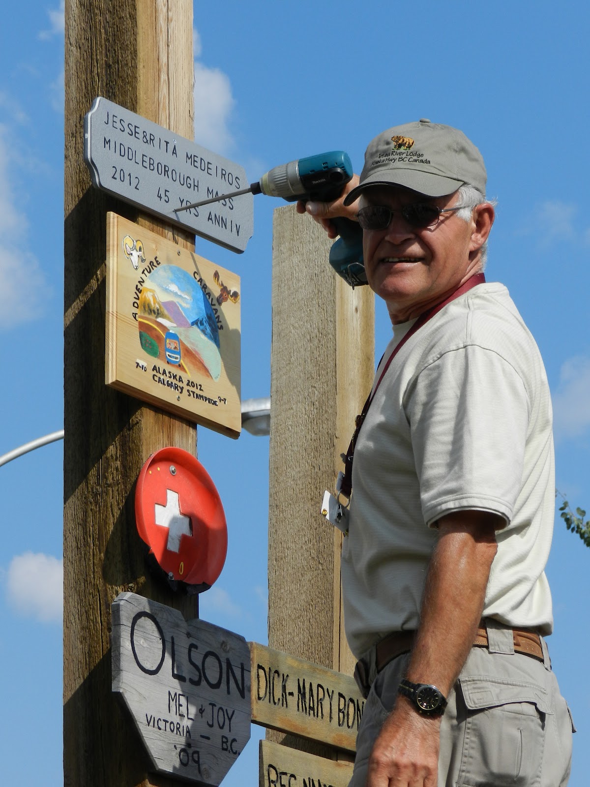 The caravan has a signed that we put up for our Alaska Caravan. Jesse made a sign for us. Here is a picture of Jesse putting up our sign. It is fun to walk through here and see if you can find people that you know who have come here before you.