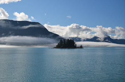Today we have a 9 hour cruise to the Prince William Sound Meares Glacier. It rained all night and it was very foggy this morning. We boarded the catamaran for our long day and couldn't even see through the fog to get out of the Valdez Harbor. Within an hour the skies had cleared and the water was very smooth. We had a wonderful day with many wildlife being spotted. We saw Dall Porpoise, Harbor Seals, Sea Otters, Eagles, Puffins and many many different birds. We also got to see a few bears, but too far away to get a picture. Here are a few pictures of the magnificent scenery on our boat cruise.