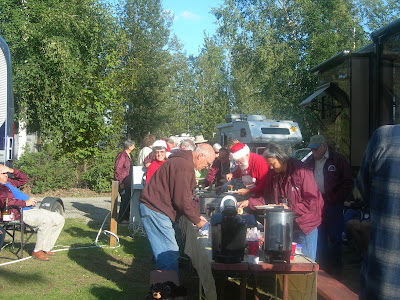 Back to the motorhome for 1 hr for a short travel briefing and back on the bus to the all you can eat Salmon Bake and Show. This was a fun night. Food was very good and the show was excellent. It is always good to have a great laugh. It is lots of fun going to the shows with the group.