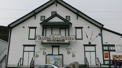 Today was our first full day in Dawson City , YT which is in the heart of the Klondike. Dawson City is where the Gold Rush started in 1896. By 1897-1898 the gold had already been removed from the mines. People who made lots of money had no place to spend it so they headed out of here back to the United States. When they arrived in cities like Seattle and San Francisco it didn't take long for word to get out that there was a a lot of gold in Dawson City and lots of people headed here. They estimate that 100,000 stampeders headed north to claim their share. Not surprisingly, many of those who set out for the Klondike did not complete their journey. A lot of the ones who did come once they got here found that most of the gold had already been mined. Many just went back but the adventurous and optimistic ones saw it as a place to start businesses that would be needed here to support the miners with supplies, medical treatment, restaurants, brothels etc . It grew to a city of over 30,000 people. Today it has a population of about 1800 who remain year round. Temperatures have been known to plummet to minus