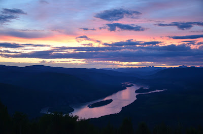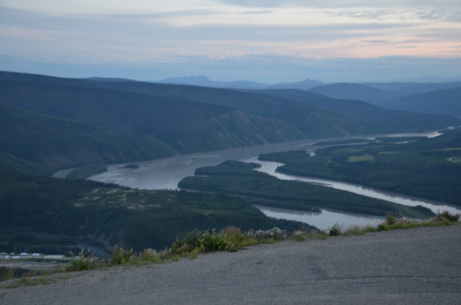 We took a ride to the top of the Midnight Dome. From atop this mountain you can oversee Dawson City and where the Klondike River and the Yukon River converge. The picture below was taken at midnight. A couple of hours later the sun rises again.