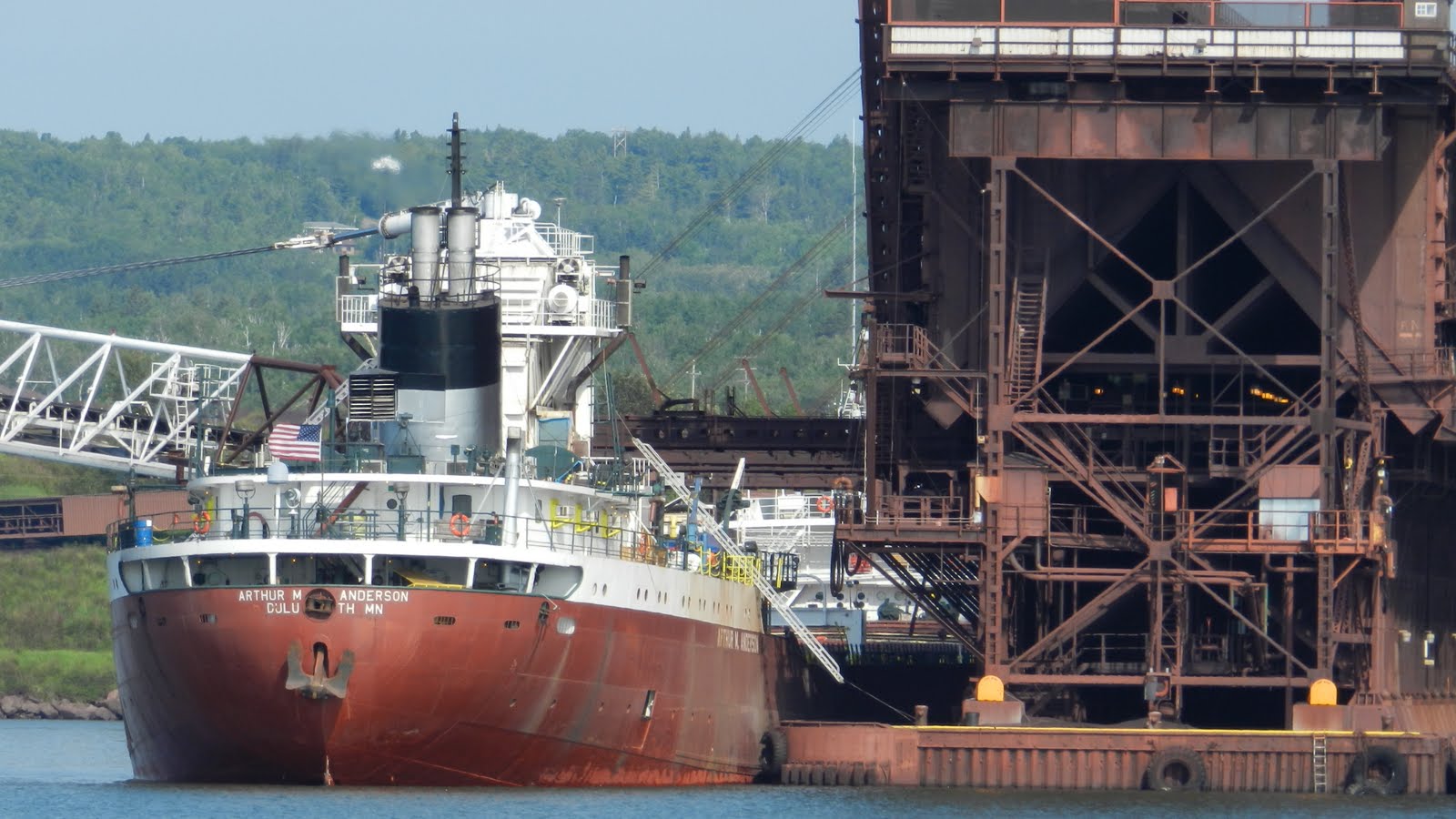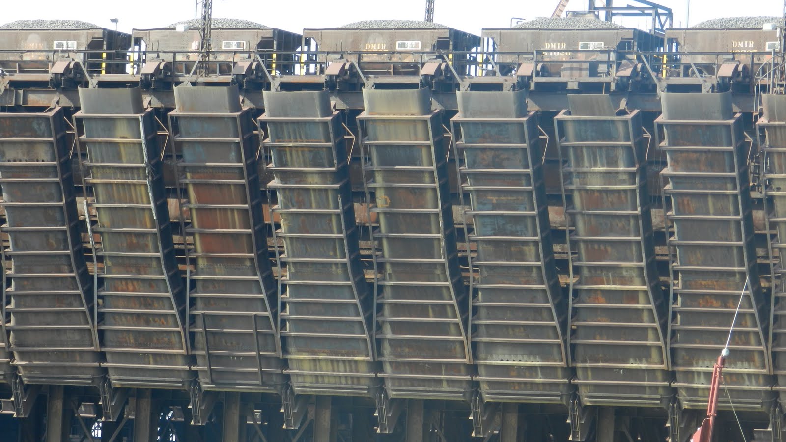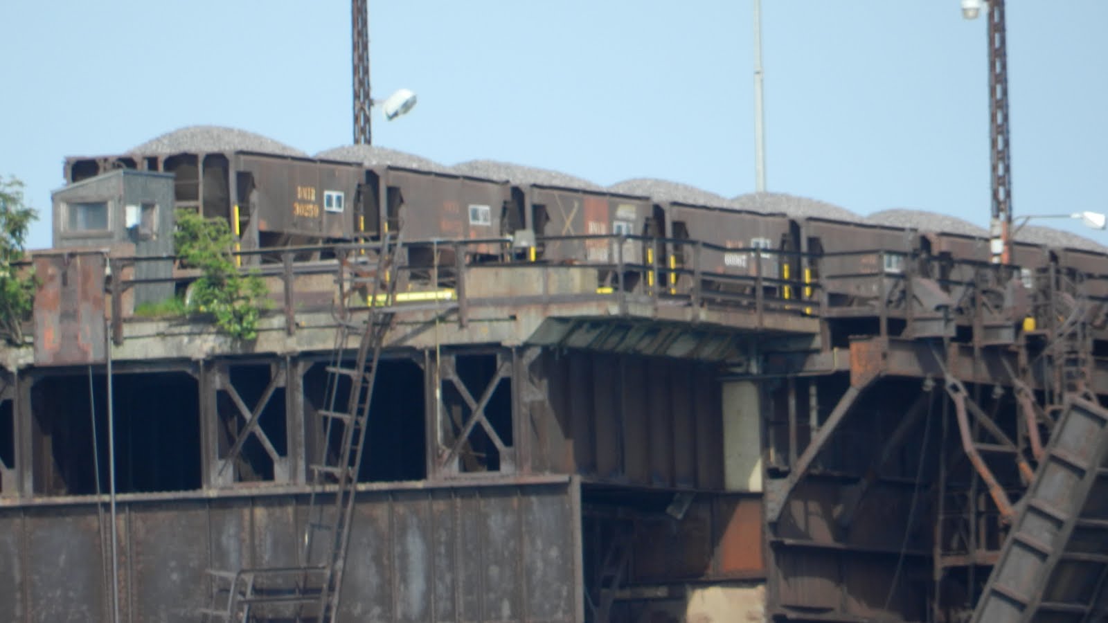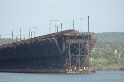 Iron Ore Dock. On the left side are the conveyors that drop down on the top of the ship to load .