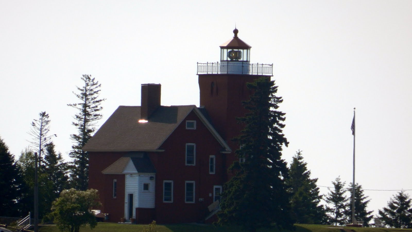 We are in Duluth, Minnesota. Found a nice campground in Saginaw, Mn not too far from Duluth. Today we did the North Shore Trail of Lake Superior which goes from Duluth, Mn to Thunder Bay, Canada. The trail is 150 miles one way up the coast of Lake Superior. We only did about half of it, then it started to rain so we decided to head back to the campground. It was still a very full day. We stopped at Two Harbors and saw a beautiful lighthouse. There was also a lightstation at the end of a long pier so we decided to walk to the end of the pier to see it.