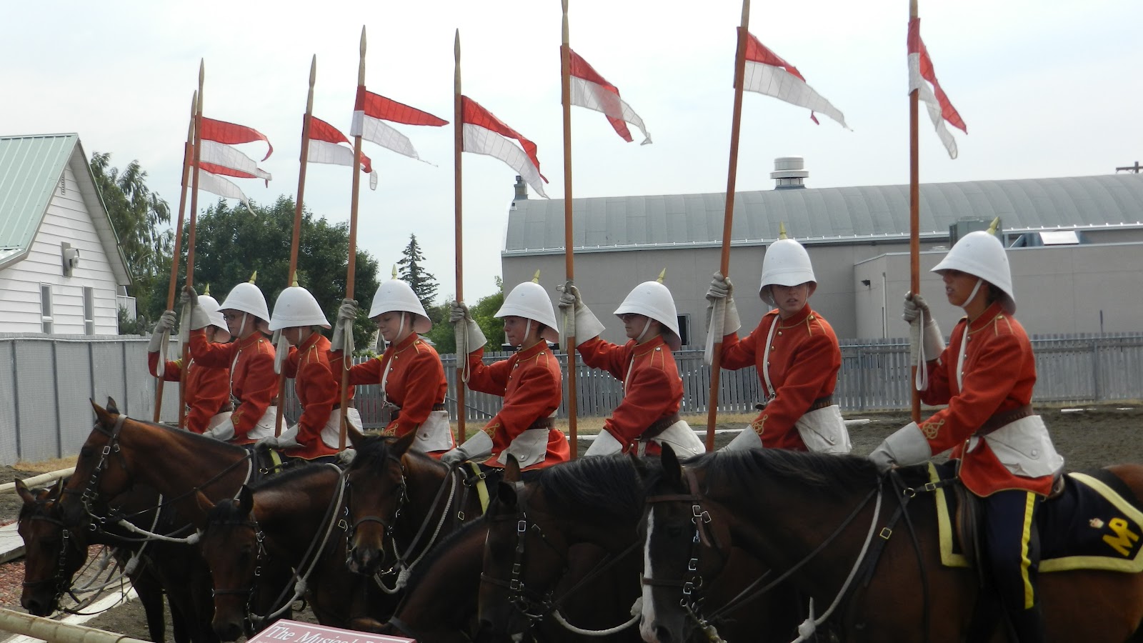 Today is a travel day. We have to drive 179 miles to get to Cochrane, Alberta, Canada (just outside of Calgary). On our way we stopped at Fort MacLeod to view the fort. This fort was the first police fort to be established to bring law and order to the Canadian West. We also got to watch the Famous Musical Ride. This is a replica of the official Royal Canadian Mounted Police Musical Ride. If you don't know what this is, it is a performed by Cadets (all of them happened to be girls) on horseback doing all kinds of figured maneuvers to music. The official ride is done by the Royal Canadian Mounted Police which we will see at the Stampede. It is amazing how precise and coordinated these maneuvers are. It was a great place to visit.