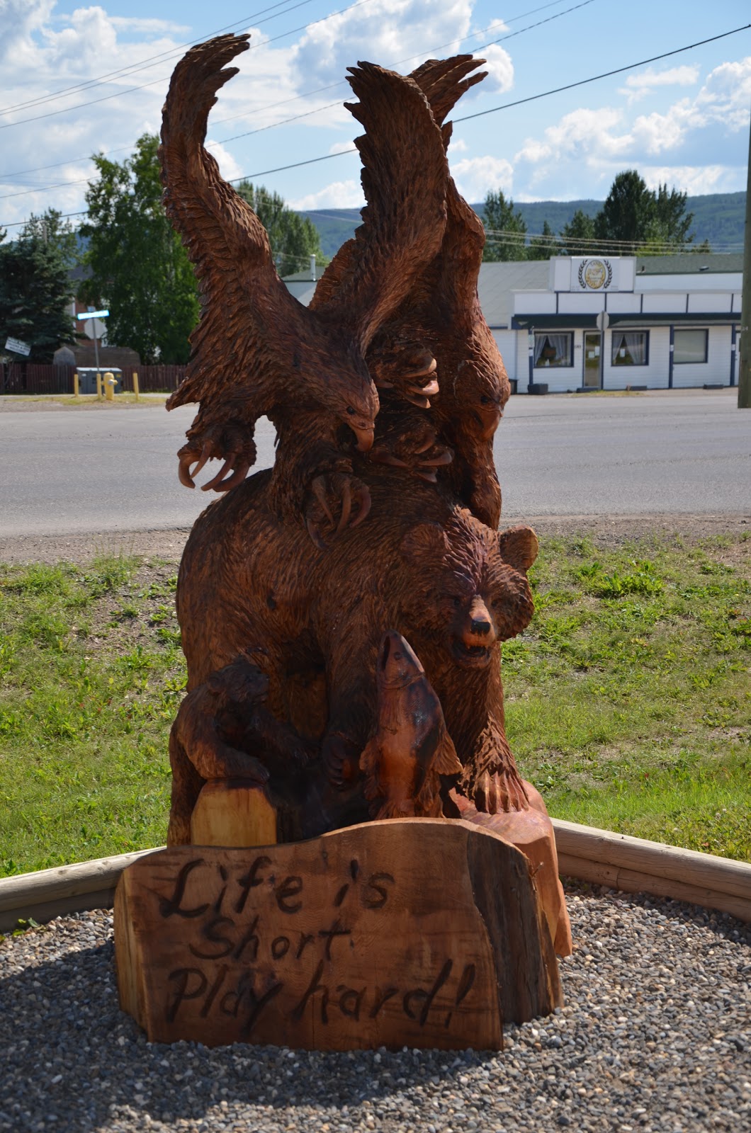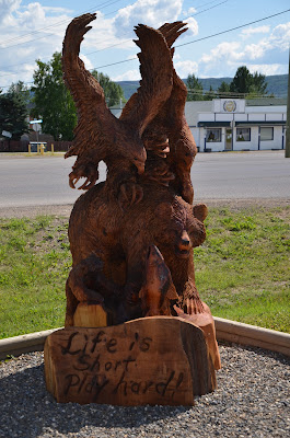 While on our way to Dawson Creek we did stop along the way in Chetwynd to take a quick tour of where they hold the Chetwynd International Chain Saw Carvings. They had over 120 carvings on display. People come from all over the world the 2nd weekend of June to carve sculptors out of a log. The log is 8 feet long and they have 35 hrs to complete their carving. They can only use machines,,,no sculpting by hand tools. The town pays for all their expenses like travel, place to sleep and meals. In return the town gets to keep the sculptings. They were beautiful.