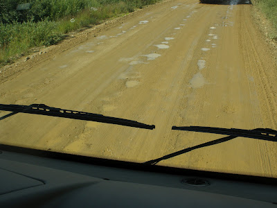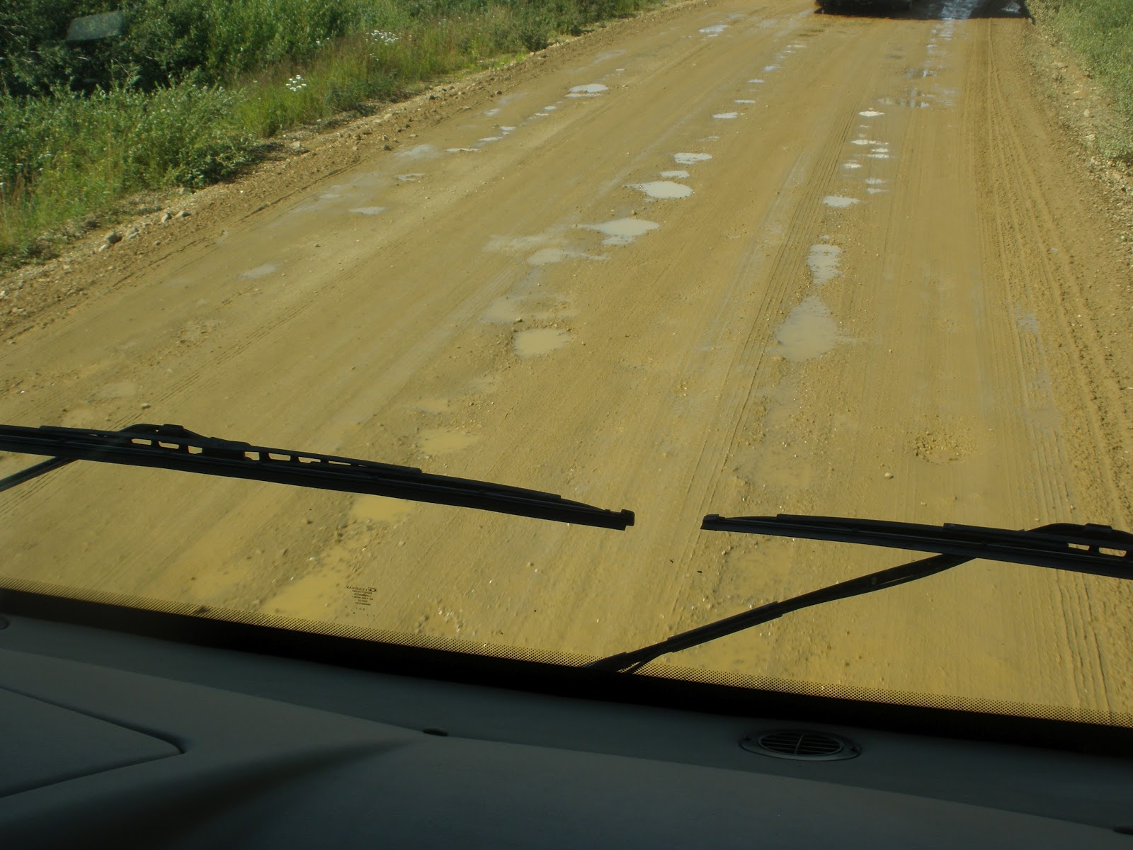 THE FOG HAS CLEARED. THIS IS WHAT THE ROAD LOOKS LIKE (LOTS OF POTHOLES AND RUTS) TOOK US 5 1/2 HRS TO GO 110 MILES