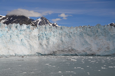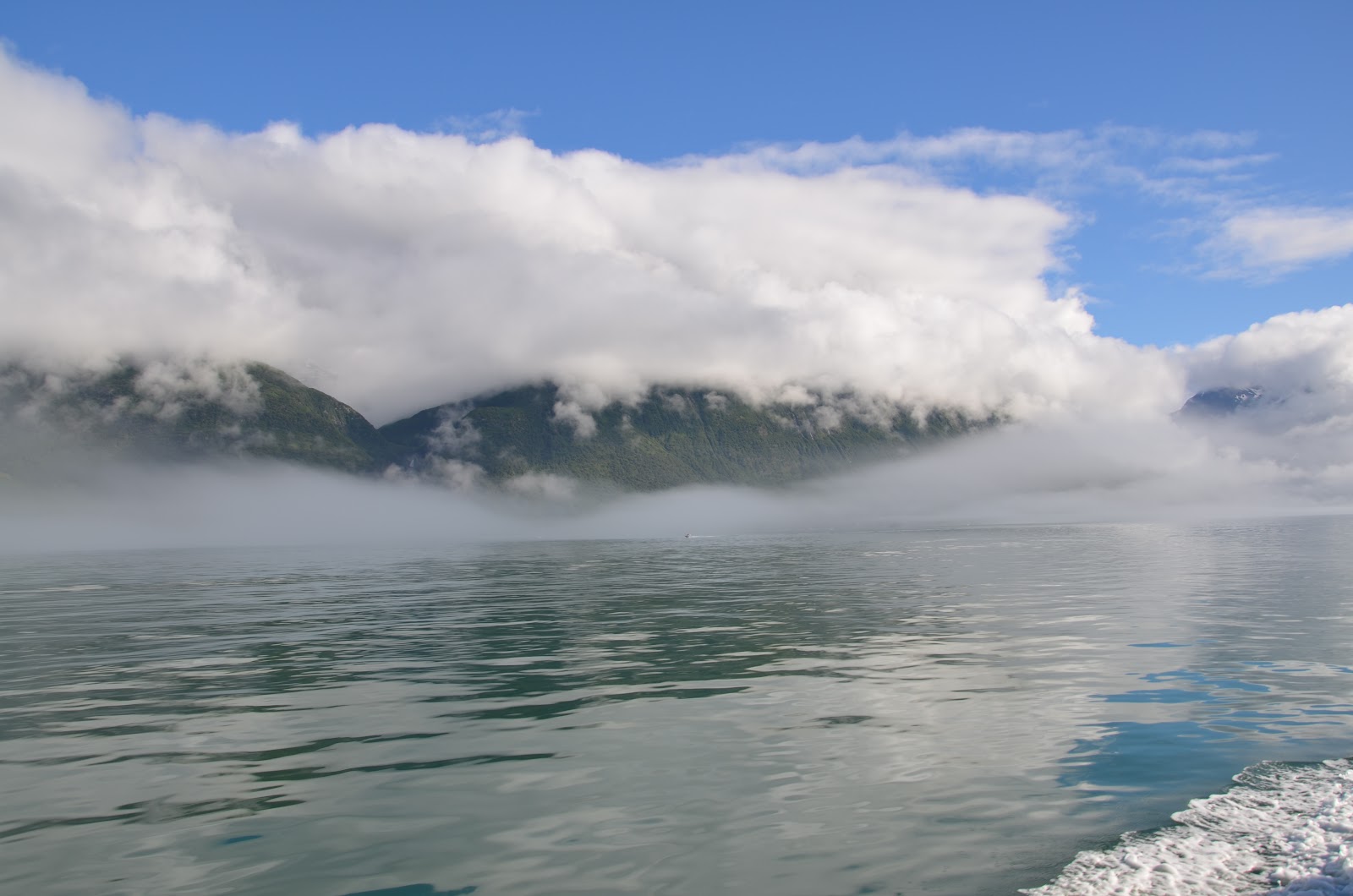 Today we have a 9 hour cruise to the Prince William Sound Meares Glacier. It rained all night and it was very foggy this morning. We boarded the catamaran for our long day and couldn't even see through the fog to get out of the Valdez Harbor. Within an hour the skies had cleared and the water was very smooth. We had a wonderful day with many wildlife being spotted. We saw Dall Porpoise, Harbor Seals, Sea Otters, Eagles, Puffins and many many different birds. We also got to see a few bears, but too far away to get a picture. Here are a few pictures of the magnificent scenery on our boat cruise.