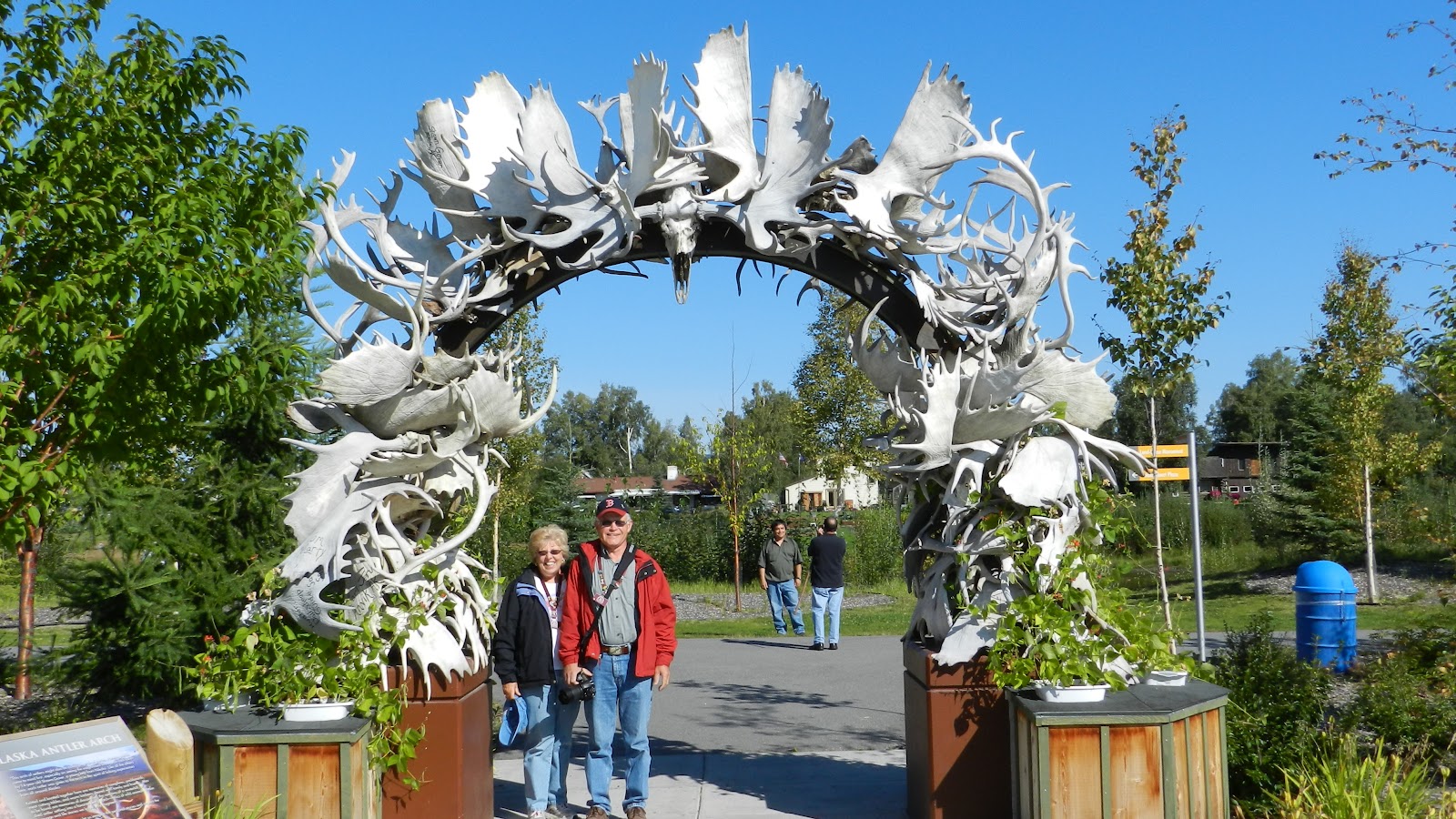 Our next stop was the Morris Thompson Cultural Center. There were beautiful gardens at this museum. Inside was an assortment of artifacts from Alaska and its natives. Outside was an arch made of moose antlers.